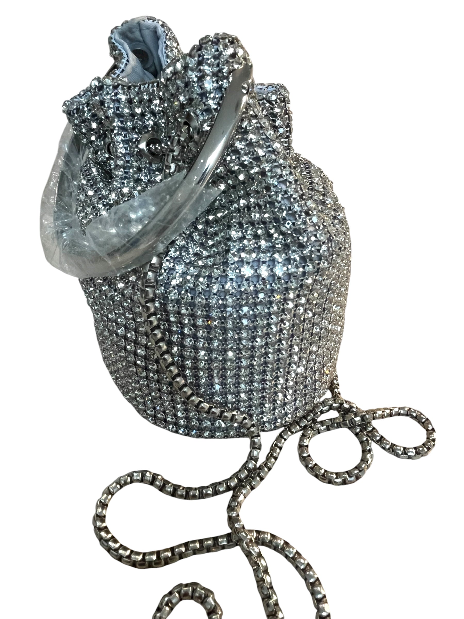 The luxurious silver satin lining complements the exterior brilliance. This potli combines the timeless appeal of traditional Indian accessories with modern embellishment techniques, making it ideal for weddings, sangeets, receptions, festivals, or any special celebration.